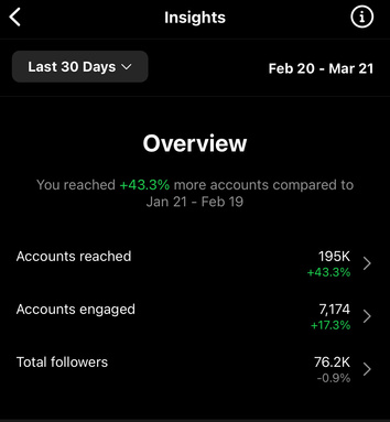 *IG Stories: 10k avg views
